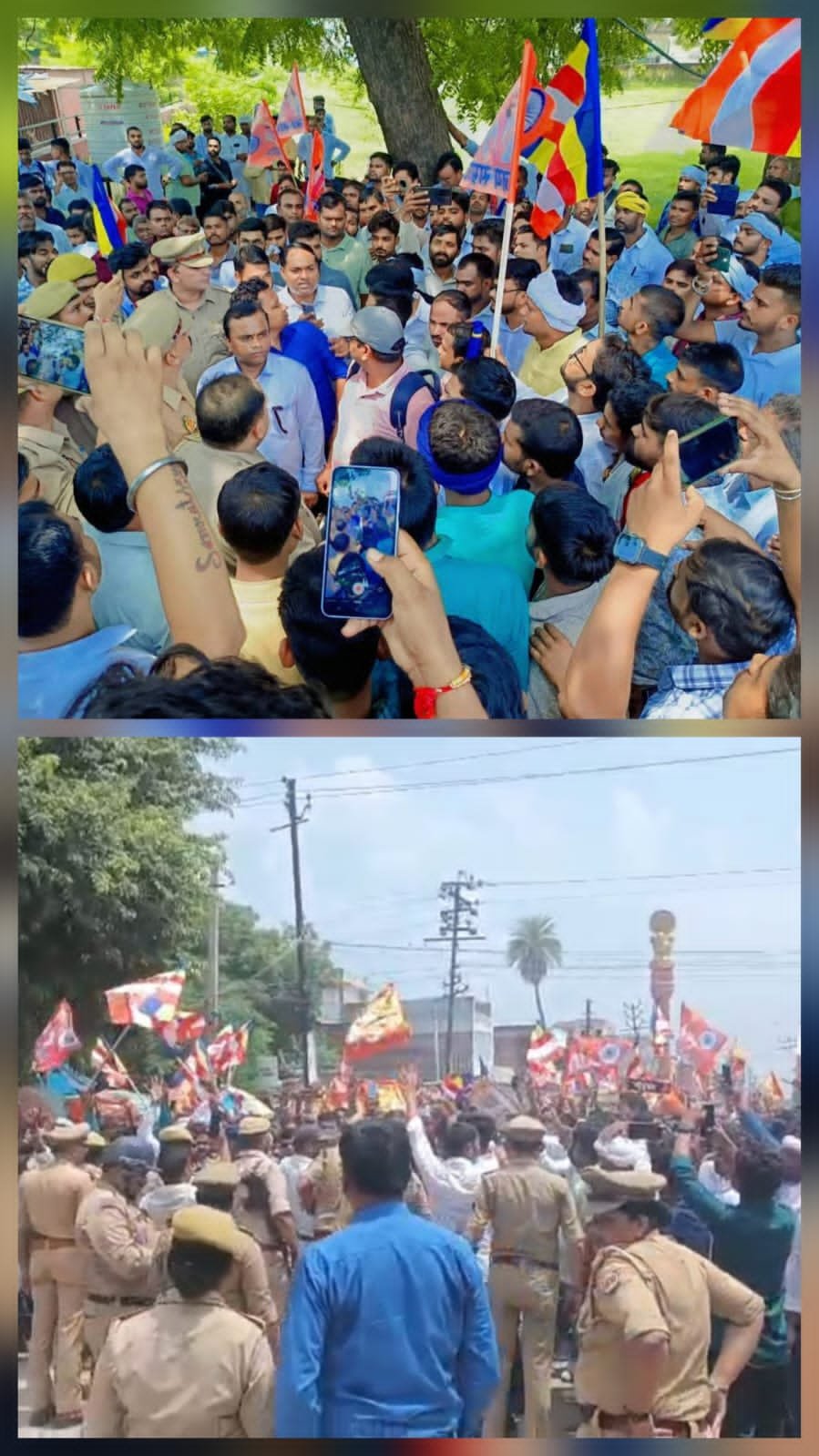 तो वहीं ज्ञापन सौंपने के दौरान प्रशासन ने कलेक्ट्रेट परिसर पहुंचने वाले रास्ते में प्रवेश से रोकने की कोशिश की, जिस पर संगठन के लोगों ने नाराजगी जताई और बाद में मौके पर पहुंचे सिटी मजिस्ट्रेट व एडिशनल एसपी संजीव सिन्हा ने जिला अध्यक्ष अभिषेक मौर्य से ज्ञापन लिया और आश्वासन दिया कि 48 घंटे के भीतर आशीष तिवारी की गिरफ्तारी कर ली जाएगी।