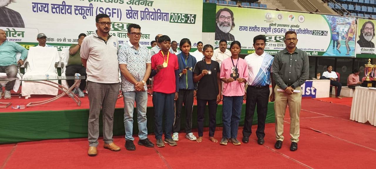 पाकुड़ :-राजधानी रांची में आयोजित “खेलो झारखंड” राज्य स्तरीय वुशू प्रतियोगिता में पाकुड़ जिले की बालिका खिलाड़ी दुर्गी तुरी ने उत्कृष्ट प्रदर्शन करते हुए कांस्य पदक जीतकर पूरे जिले का नाम रोशन किया। दुर्गी, उत्क्रमित मध्य विद्यालय, हरिणडांगा की छात्रा हैं और अंडर-17 बालिका वर्ग में खेलते हुए तीसरे स्थान पर रहीं।