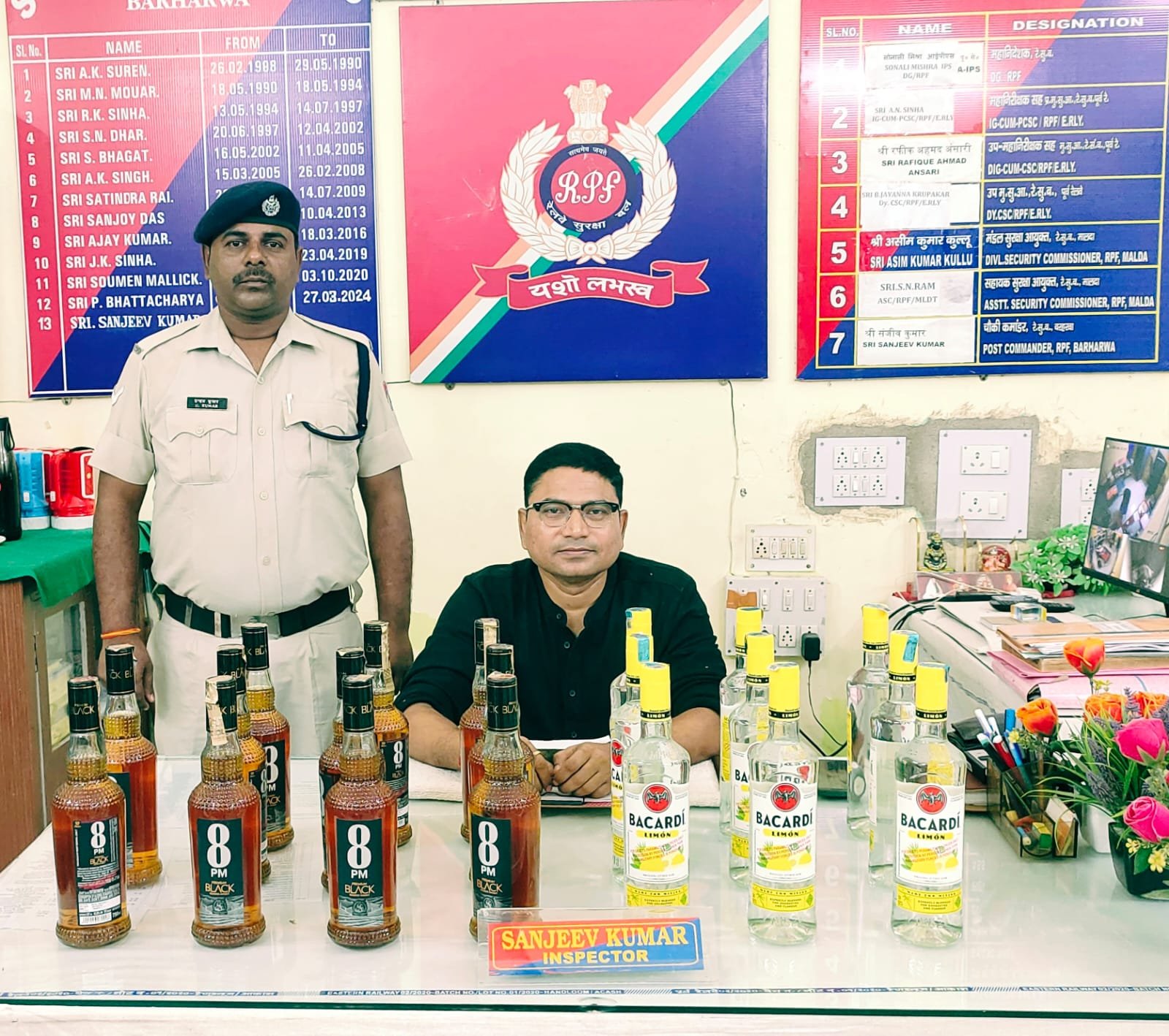 यात्रियों से पूछताछ में बताया गया कि एक व्यक्ति न्यू फरक्का स्टेशन पर ट्रेन से उतरते समय ये कार्टून सीट के नीचे रख गया था। जांच में दोनों कार्टूनों से 9 बोतल बकार्डी लिमोन रम (750 मिली प्रत्येक) और 11 बोतल 8 पीएम प्रीमियम ब्लैक रिजर्व व्हिस्की (750 मिली प्रत्येक) बरामद हुईं।