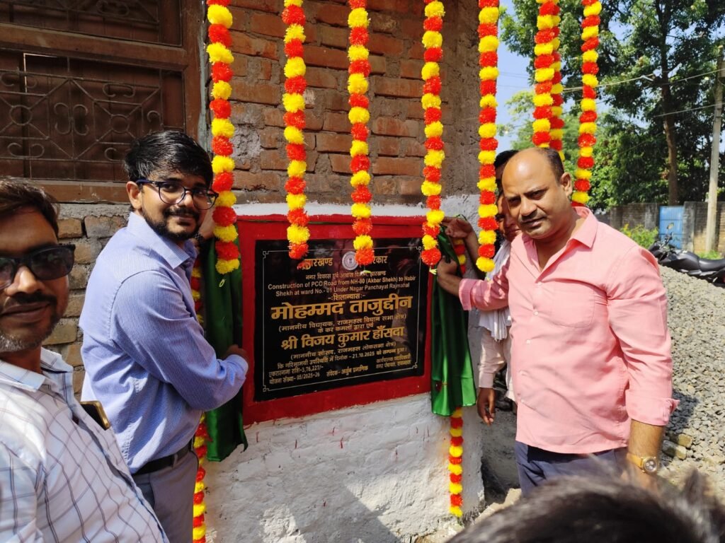 राजमहल साहिबगंज राजमहल नगर पंचायत क्षेत्र के विभिन्न वार्डों में मंगलवार को करीब लाखों रुपये की लागत से सात विकास योजनाओं का शिलान्यास किया गया।कार्यक्रम का उद्घाटन राजमहल विधायक प्रतिनिधि मो. मारूफ उर्फ गुड्डू एवं नगर पंचायत प्रशासक दानिश हुसैन ने संयुक्त रूप से किया।विधायक प्रतिनिधि मो मारूफ उर्फ गुड्डू ने कहा कि नगर क्षेत्र में जनहित से जुड़ी आवश्यक योजनाओं का क्रियान्वयन निरंतर किया जा रहा है। विधायक जनता की सुविधा के लिए सतत प्रयासरत हैं, ताकि अधिक से अधिक नागरिकों को विकास कार्यों का लाभ मिल सके।नगर पंचायत प्रशासक दानिश हुसैन ने बताया कि जिन योजनाओं का शिलान्यास किया गया है, उनमें शामिल हैं 1. वार्ड संख्या 1: एनएच-80 पर अकबर शेख के घर से नाबिर शेख के घर तक पीसीसी सड़क निर्माण।2. वार्ड संख्या 2: एनएच-80 सड़क से राजीव अली के घर तक पेवर्स ब्लॉक लगाने का कार्य।3. वार्ड संख्या 5: कब्रिस्तान से पीसीसी रोड तक पेवर्स ब्लॉक लगाने का कार्य।4. वार्ड संख्या 6: कैलाश मंडल के घर से पंचू मंडल के घर तक पीसीसी सड़क निर्माण।5. वार्ड संख्या 11: विनय हजारी के घर से विनोद हजारी के घर तक पीसीसी सड़क निर्माण।6. वार्ड संख्या 14: मौला शेख के घर से गणी शेख के घर तक पेवर्स ब्लॉक लगाने का कार्य।प्रशासक ने सभी संवेदकों को गुणवत्ता का विशेष ध्यान रखते हुए निर्धारित समय में कार्य पूर्ण करने का निर्देश दिया।मौके पर झामुमो नगर अध्यक्ष मो. आजाद, नगर सचिव स्मित चौरसिया, प्रखंड अध्यक्ष अनिसुर रहमान, केशव सिंह, रेखा देवी, किशन बर्मन, अयूब शेख, अब्दुल कादिर सहित अन्य गणमान्य लोग उपस्थित थे।
