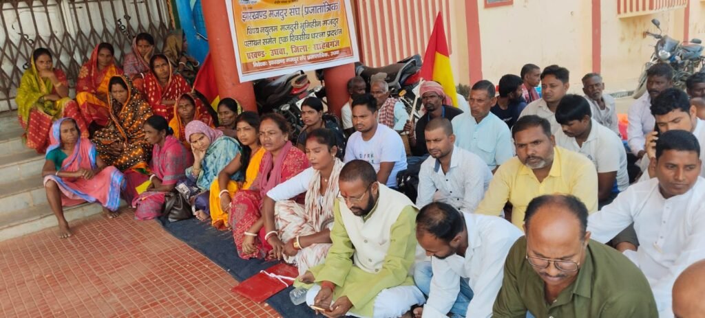 झारखंड उधवा साहिबगंज, उधवा झारखंड मजदूर संघ प्रजातांत्रिक जिला समिति के तत्वावधान में मंगलवार उधवा अंचल कार्यालय के समक्ष एकदिवसीय धरना-प्रदर्शन आयोजित किया गया। कार्यक्रम की अध्यक्षता प्रखंड अध्यक्ष जीवन घोष ने की।धरना का मुख्य उद्देश्य क्षेत्र के मजदूर वर्ग से जुड़ी विभिन्न समस्याओं के समाधान की मांग करना था। संघ के नेताओं ने अंचलाधिकारी के समक्ष अपनी सात सूत्रीय मांगें रखीं, जिनमें प्रमुख रूप से शामिल हैं: